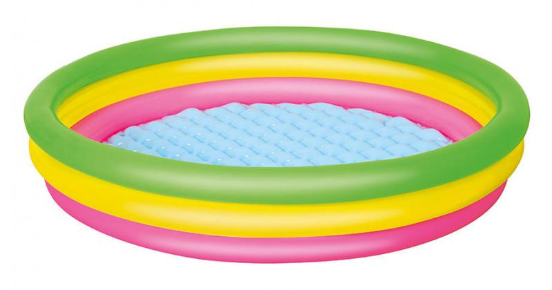 Детский надувной бассейн небольшой глубины отлично подойдет для купания вашего ребенка в жаркий летний день.
