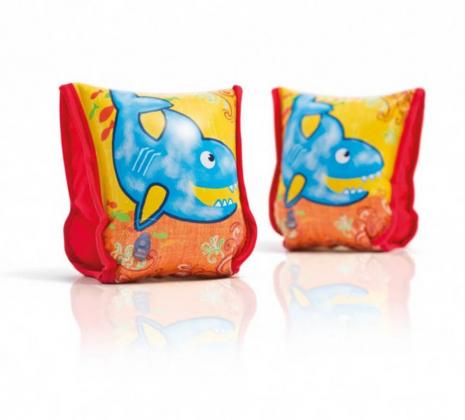Надувные нарукавники Акула 23x18 см INTEX 56659 , прекрасная возможность подарить своему ребенку чувство уверенности в воде, столь необходимое юным пловцам. Легкие и прочные, удобные и яркие – нарукавники нравятся малышам и позволяют родителям чуть меньше волноваться за детей, играющих на воде.
