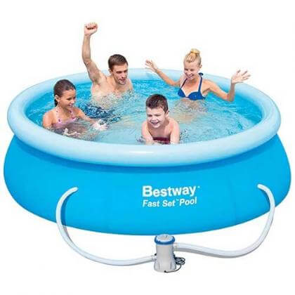 Надувной бассейн Bestway 57268/57100 Fast Set отличается простотой и легкостью. Стенки бассейна, выполнены из армированного ПВХ, внешний слой - полиэстер для особой прочности. Поддержка бортов осуществляется при помощи надувного кольца, которое поднимается по мере наполнения бассейна и расправляет его стенки.