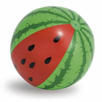 Большой пляжный мяч в виде арбуза, плотность материала 0.23 мм, материал ПВХ, позволяет быть прочным и в тоже время не тяжелым. Можно играться на пляже, в воде или бассейне.