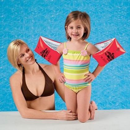 Тем, кто еще не научился плавать, нарукавники помогут удержаться на воде.