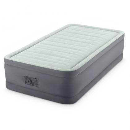 Встроенный электронасос позволяет быстро надувать и сдувать кровать и дает возможность отрегулировать ее упругость. Чтобы отрегулировать степень упругости кровати, на моторном отсеке присутствует специальная кнопка.