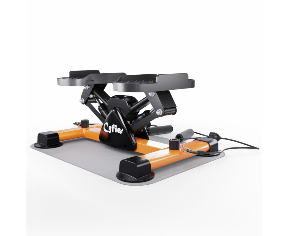 Степпер компактный с эспандерами DFC CYFIE — это стильный и эффективный тренажёр для домашних тренировок, который помогает укреплять мышцы ног, икр и верхней части тела, а также развивать сердечно-сосудистую систему. Выполненный в ярком оранжевом цвете, он создает позитивную атмосферу во время занятий. Максимальный вес пользователя — 100 кг. Благодаря гидравлическому цилиндру, тренажёр работает тихо и долговечно, а его небольшие размеры (54 x 34 x 26 см) позволяют легко разместить его даже в ограниченном пространстве или углу комнаты. Регулировка высоты педалей от 18 до 31 см позволяет индивидуализировать нагрузку и комфорт. Расстояние между педалями — 16,5 см, что способствует естественной биомеханике движений и снижает нагрузку на суставы. Педали с рифленой поверхностью обеспечивают надежное сцепление и безопасность во время тренировок. Встроенный монохромный ЖК-дисплей отображает время, калории, количество шагов, шаги в минуту и режим сканирования. Для питания дисплея потребуется одна батарейка типа AAA (в комплект не входит). В комплект входит антивибрационный коврик размером 72 x 36,5 см, а также эспандеры длиной 76 см для разнообразия упражнений. Резиновые накладки на основание тренажёра предотвращают скольжение, обеспечивая устойчивость и безопасность.