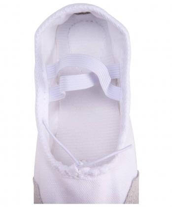Двойная резинка и шнуровка-утяжка надежно фиксируют обувь на ноге, поэтому балетки не слетают во время тренировок. Гибкая тонкая подошва поддерживает стопу в естественном положении, повышая комфорт во время занятий.