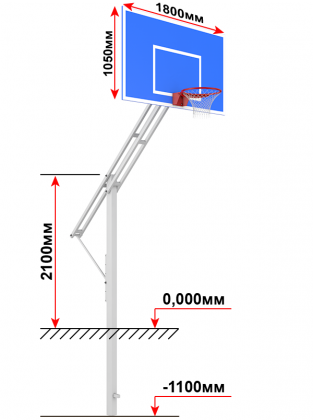 Баскетбольная стационарная уличная стойка с регулируемой высотой кольца. От 2,6 до 3,05 м с интервалом по 5 см. Из стального профиля 80х80 и 40х40 мм. Комплектуется щитом из фанеры 1800х1050 мм.