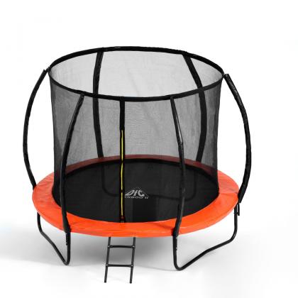 Обновленная модель популярного батута DFC серии KENGOO - вариант II. Батуты DFC давно известны на российском рынке. Зарекомендовали себя как надежные, выполненные из качественных материалов, неприхотливы в обслуживании. Представляем вам новую серию батутов от компании DFC - серия KENGOO II с внутренней защитной сеткой и яркой расцветкой - оранжевый с черным. Высота батутов серии KENGOO II - от 46 до 85 см. Особое внимание при изготовлении батутов компания DFC уделяется качеству используемых материлов. Надежность конструкции обеспечивается прочной рамой с полимерным двусторонним покрытием, нанесенным методом холодной гальванизации. Рама изготовлена из трубы диаметром до 38 мм и толщиной до 1,5 мм. Также стоит обратить внимание на используемое количество пружин. Даже на самом маленьком по диаметру батуте размером 5 футов (152 см) используется 30 пружин, что позволяет увеличить высоту прыжка. Пружины выполнены из высококачественной стали, которые имеют повышенную защиту от износа и растягивания, тем самым позволяя продлить срок службы батута. Для обеспечения безопасности пользователя, пружины закрыты защитным чехлом. Прыжковая поверхность выполнена из самого прочного на настоящий момент полипропилена последнего поколения "Перматрон". Внутренняя защитная сетка (в комплекте) обеспечит безопасность вам и вашим близким от случайного падения, изготовлена из высокопрочного нейлона, надежно крепится к стойкам батута. Для защиты детей вход/выход через сетку выполнен на молнии с фиксирующими защелками с внешней стороны. В комплекте идет удобная лестница. Сумка для обуви в комплект не входит. В комплекте с батутом поставляются ключи для сборки и подробная инструкция на русском языке. На батуты DFC предусмотрена гарантия сроком на 1 год. Батуты упакованы в прочную картонную упаковку с нанесенным красочным изображением.