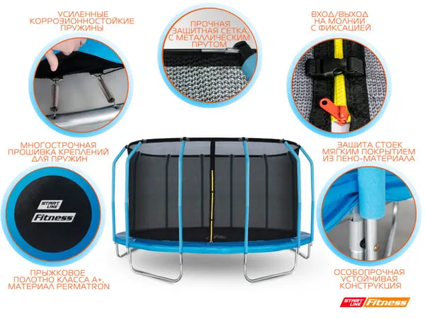 Батут StartLine Fitness 16f (488 см) с внутренней сеткой и держателями