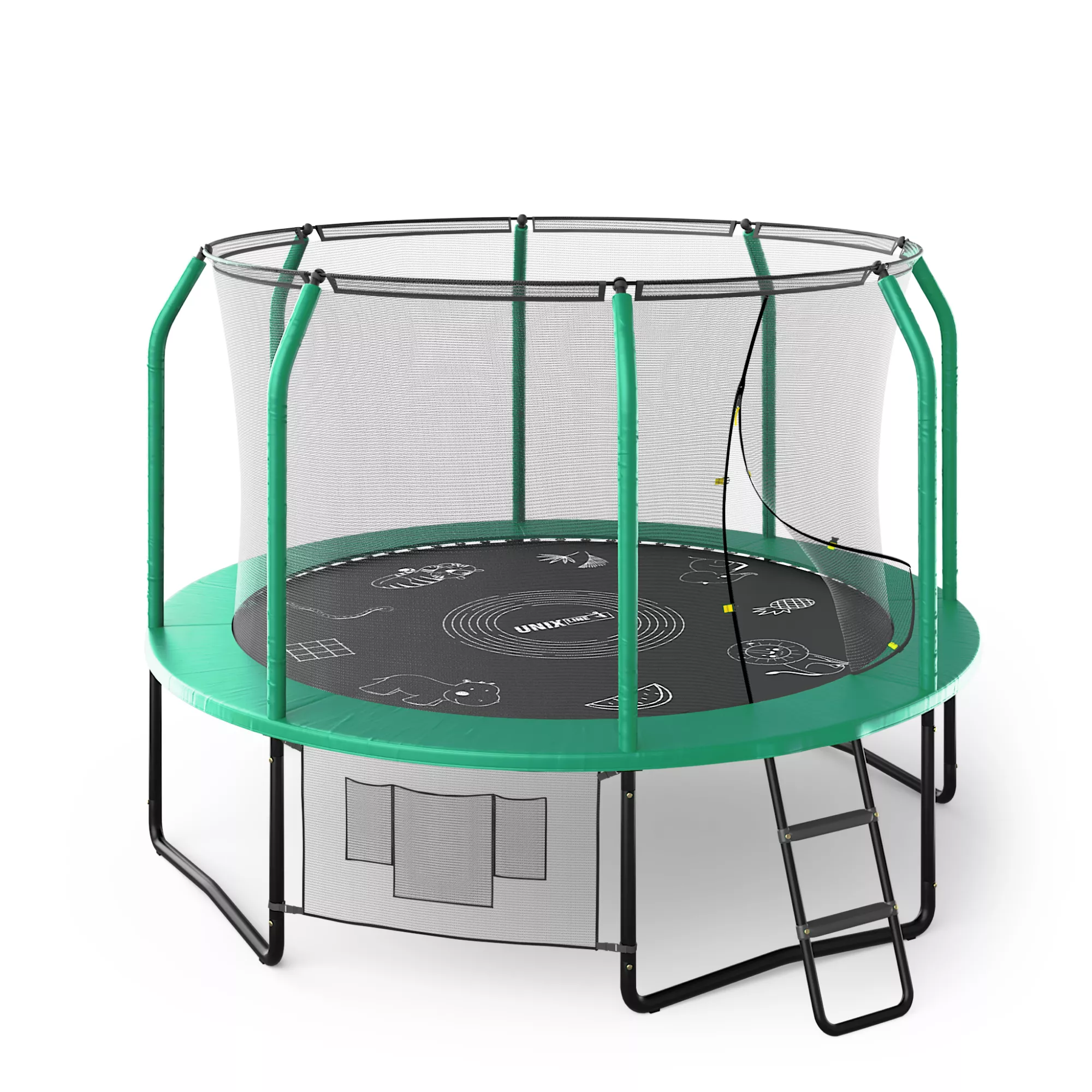Батут оснащен высокой защитной сеткой высотой 170 см, которая обеспечивает максимальную безопасность при прыжках. Она предотвращает падения и травмы, а также защищает детей от попадания на батут животных или других предметов. Батут UNIX Line – это отличный выбор для родителей, которые хотят обеспечить своим детям безопасные и интересные занятия на свежем воздухе. Он поможет развить физические способности детей, а также принесет много радости и удовольствия всей семье. Внутренняя защитная сетка предотвращает попадание ног в блок пружин. Защитная сетка расположена по периметру прыжкового полотна. Сетка изготовлена из качественного и эластичного материала Polyethylene, который более устойчив к воздействию влаги и УФ-излучения.