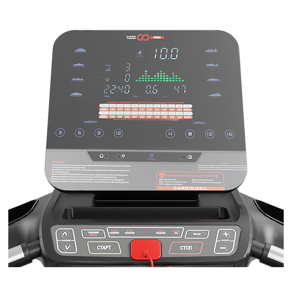 Профессиональная беговая дорожка CardioPower PRO CT100 - качественная и функциональная модель обновленной линейки бренда CardioPower PRO. Модель предлагается по доступной цене и имеет совершенных технические характеристики, продвинутый программный функционал и стильный современный дизайн. Мощный двигатель, усиленная рама из алюминиевого сплава, качественная сборка и комплектующие компоненты обеспечивают высокую надежность и рассчитаны на интенсивную эксплуатацию в условиях клубов как со средней, так и с высокой проходимостью.