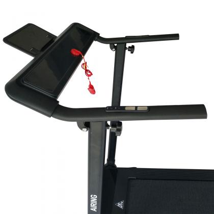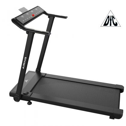Электрическая беговая дорожка DFC AIRING для полноценных занятий дома. Тренажер начального уровня с мотором мощностью 1,25 л.с. 12 встроенных программ и ручная настройка параметров помогут разнообразить занятия на тренажере. На поручнях расположены датчики пульса. Для точности измерения частоты сердечных сокращений (ЧСС) во время тренировки рекомендуем приобрести отдельно набор DFC W117: кардиопояс + часы - монитор. Планшет или смартфон удобно разместить на держателе и прослушать любимый трек или посмотреть фильм. Складная конструкция позволяет компактно сложить тренажер после занятий и экономить пространство до следущей тренировки.
