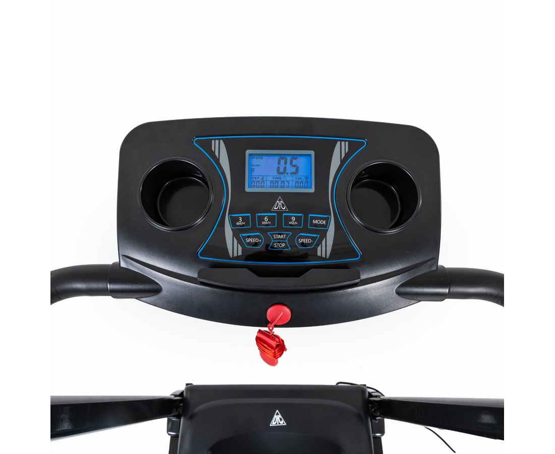 Беговая дорожка DFC AVALON для реабилитации черная T185B — это современное и надежное решение для домашних тренировок и реабилитационных занятий. Благодаря компактным размерам и стильному черному цвету она отлично впишется в любой интерьер и занимает минимум пространства. Мощный двигатель постоянного тока мощностью 1,25 л/с обеспечивает развитие скорости от 0,8 до 10 км/ч с шагом 0,1 км/ч. Размер бегового полотна составляет 110×40 см, его толщина — 1,4 мм, что гарантирует комфорт и безопасность во время занятий. Встроенная система амортизации из 10 резиновых амортизаторов снижает нагрузку на суставы, делая тренировки более мягкими. В комплект входит ключ безопасности для аварийной остановки. На консоли расположены держатель для планшета и 2 подстаканника, а также ЖК-дисплей с голубой подсветкой, отображающий параметры: скорость, время, расстояние, пульс и калории. Сенсорные датчики пульса на поручнях позволяют быстро и точно измерять сердечный ритм. Регулировка угла наклона отсутствует, а дорожка не складывается, что обеспечивает стабильность и прочность. Размер в рабочем виде — 131×70×111,5 см, вес — 33 кг, а в упаковке — 137×73×22 см. Страна производства — Китай. Создайте у себя дома комфортное место для кардио и реабилитации и достигайте своих целей.