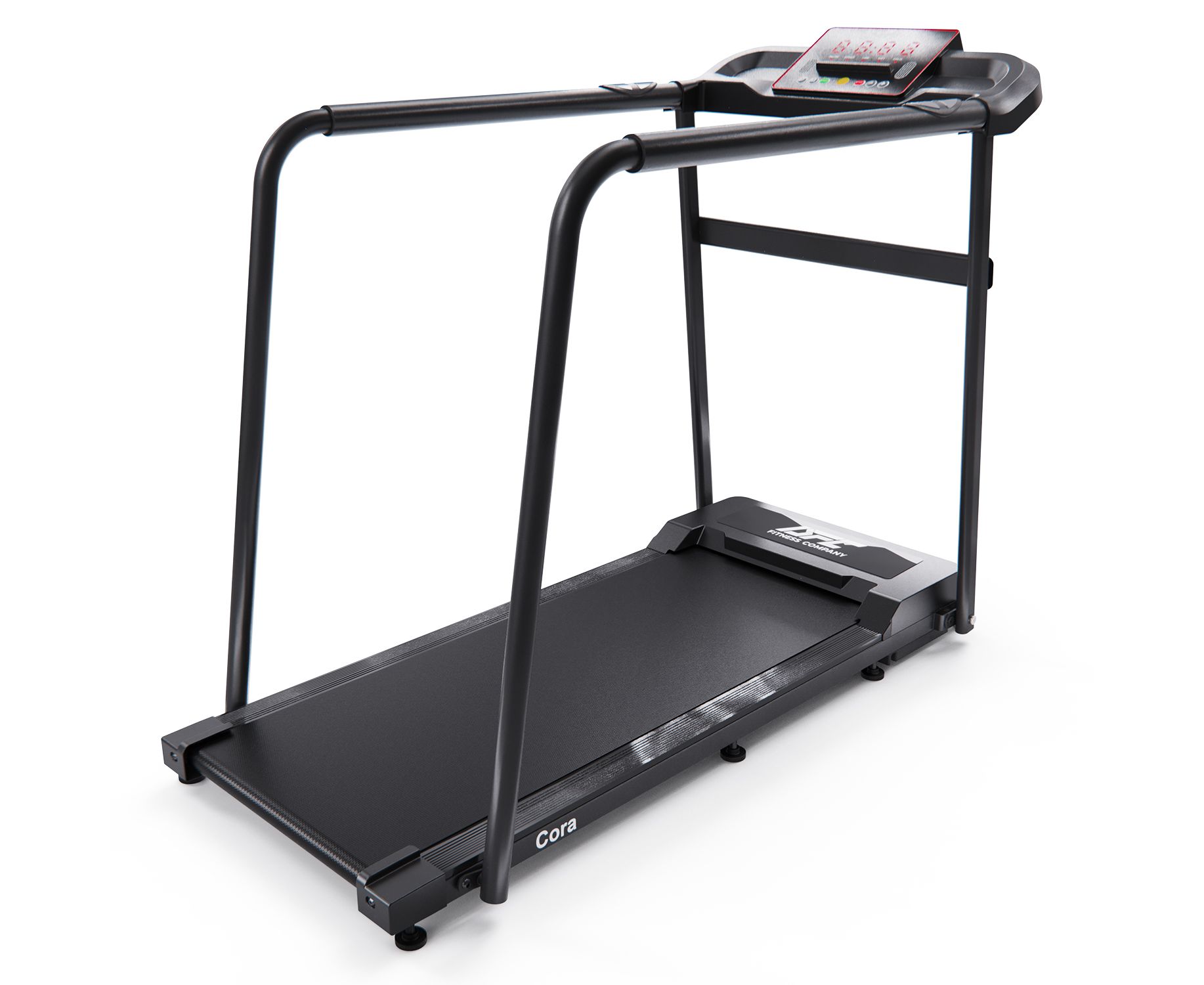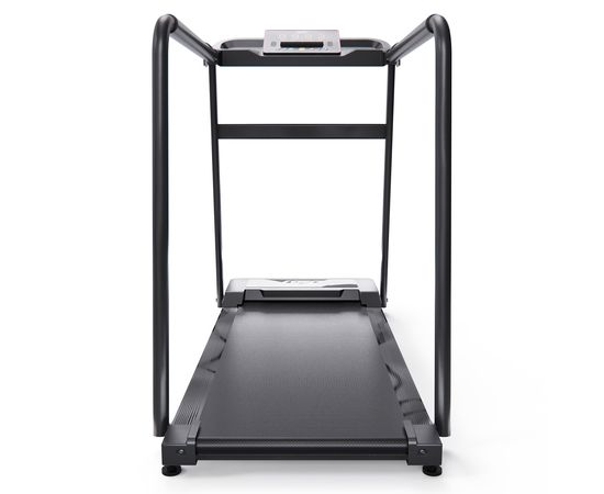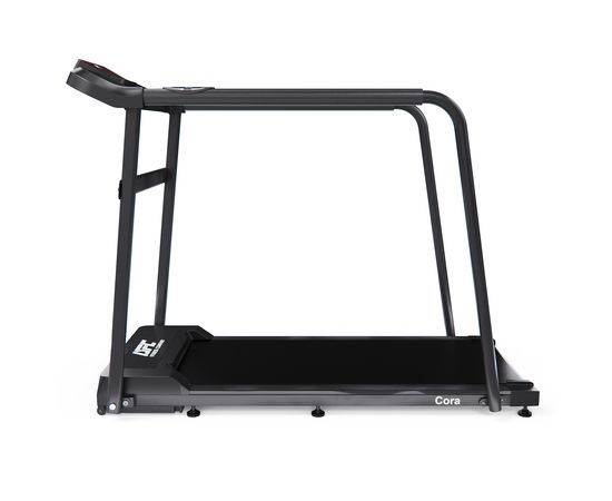Электрическая беговая дорожка DFC Cora — это идеальный выбор для домашних тренировок и реабилитационных занятий. Модель отличается наличием в комплектации специальных удлинённых поручней, что делает её особенно удобной для реабилитационных целей. Максимальный вес пользователя — 115 кг, а мощный двигатель с пиковым значением 1,5 л/с обеспечивает надежную работу и долговечность. Диапазон скорости от 0,8 до 8 км/ч позволяет легко адаптировать тренировки под любые цели — от ходьбы до умеренного бега. Размер бегового полотна 100×39 см создаёт комфортные условия для занятий. Система амортизации из 6 резиновых амортизаторов снижает нагрузку на суставы, делая тренировки безопасными и приятными. Встроенный монохромный LCD-дисплей отображает параметры: скорость, дистанцию, время, калории и пульс, который измеряется с помощью сенсорных датчиков на поручнях. В комплект входят 12 предустановленных программ и одна пользовательская, что позволяет гибко планировать тренировки. Для удобства предусмотрены транспортировочные ролики и подставка под планшет, чтобы заниматься с комфортом и наслаждаться любимыми фильмами или музыкой во время тренировки.