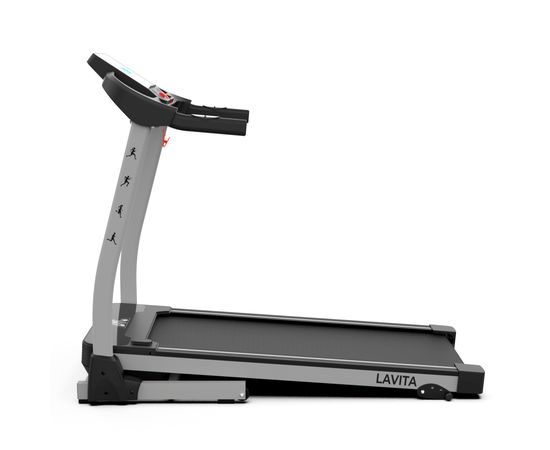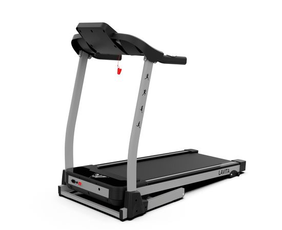 Электрическая беговая дорожка LAVITA T350 предназначена для домашних тренировок. Модель начального уровня оснащена двигателем мощностью 1,75 л.с. и предлагает 12 встроенных программ для разнообразия занятий. Скорость регулируется от 1 до 14 км/ч, а механическая регулировка угла наклона позволяет адаптировать нагрузку. Складная конструкция с амортизатором упрощает хранение тренажера. Датчики пульса на поручнях помогают контролировать ЧСС, а дополнительные аксессуары (кардиопояс и часы-монитор) повышают точность измерений. Удобные карманы для бутылки и смартфона добавляют комфорта во время тренировки. Консоль отображает скорость, время, расстояние, калории и пульс.