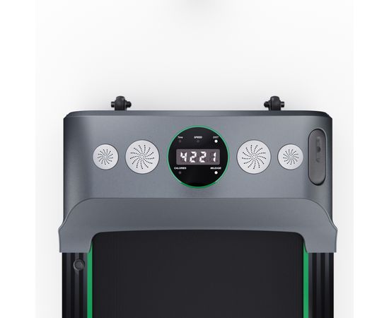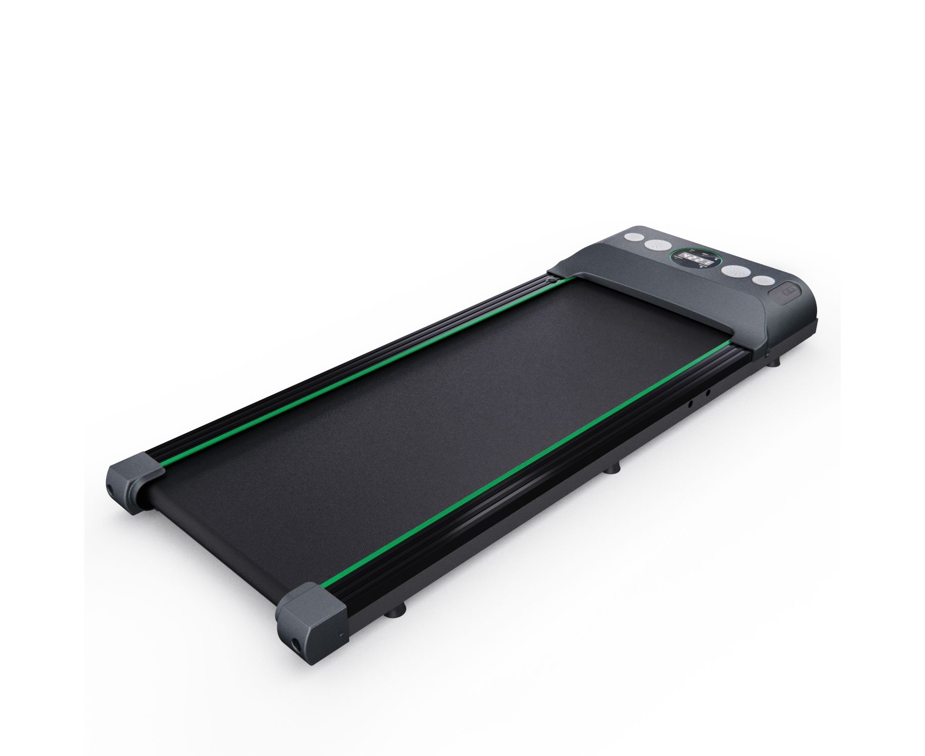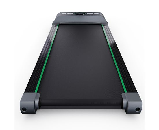 Беговая дорожка DFC MrCue — это компактное и стильное решение для домашних тренировок, которое позволяет поддерживать форму без лишних затрат пространства. Благодаря отсутствию поручней, она занимает минимальное место и отлично впишется в любой интерьер. Управление осуществляется с помощью удобного пульта, работающего от батарейки CR2025 (в комплект не входит). Максимальная нагрузка до 100 кг делает тренажер доступным для пользователей разной комплекции. Скорость регулируется от 1 до 6 км/ч, что идеально подходит для прогулок, легкой пробежки и разминки. На дисплее отображаются актуальные данные о скорости, времени, пройденной дистанции и расходе калорий. Bluetooth-соединение позволяет подключать гаджеты и слушать музыку через 4 Hi-Fi динамика, делая тренировки более приятными и мотивирующими. Автоматическая смазка полотна значительно упрощает уход за тренажером — достаточно залить специальную смазку, и он сам позаботится о смазывании. Надежный двигатель мощностью 0,65 л/с и пиковая мощность 2 л/с обеспечивают долговечность и стабильную работу. Размер в рабочем виде — 136×50×12,5 см, вес — 19 кг, а в упаковке — 23 кг. Создайте у себя дома комфортную зону для кардио и укрепляющих тренировок с DFC MrCue!