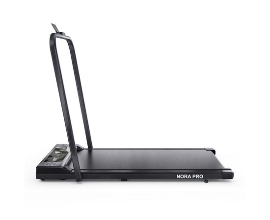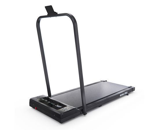 DFC NORA PRO — это современная электрическая беговая дорожка с большим дисплеем, предназначенная для домашних тренировок. Ее конструкция включает масляной канал для смазки и удобный пульт дистанционного управления для регулировки скорости. Максимальная скорость — 8 км/ч, а мощность двигателя — 1 л/с. Встроенный монохромный LCD-дисплей отображает информацию о калориях, скорости, времени и дистанции, что помогает контролировать прогресс тренировок. Максимальный вес пользователя — 100 кг. Размеры дорожки в рабочем состоянии — 122×55×105 см, а в сложенном виде — 136×56×12,5 см. Беговое полотно шириной 40 см и толщиной 1,4 мм обеспечивает комфортную пробежку, а система амортизации из 4 резиновых прокладок снижает нагрузку на суставы. В комплект входит подставка под планшет, что делает тренировки более удобными и приятными. Благодаря складной конструкции и транспортировочным роликам, тренажер легко хранить и перемещать. В комплекте также идут батарейки для дисплея.