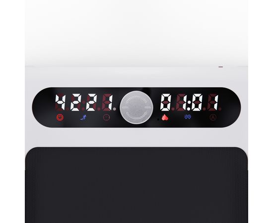 Стильная беговая дорожка PEAK морозно-белого цвета — это современное решение для тех, кто хочет поддерживать форму и при этом заботится о дизайне интерьера. Благодаря компактным размерам и отсутствию поручней, она занимает минимальное пространство и отлично вписывается в любой стиль помещения. Управление осуществляется с помощью пульта, работающего от батарейки CR2025 (в комплект не входит). Максимальная нагрузка до 100 кг подходит для пользователей разной комплекции. На удобной консоли отображаются все важные параметры: время, расстояние, калории и скорость. По бокам расположены нескользящие накладки, с которых можно начать тренировку, а затем перейти на полотно. Мощный двигатель 0,75 л/с и пиковая мощность 2 л/с обеспечивают надежную работу и долговечность. Скорость регулируется от 1 до 6 км/ч. Встроенная функция Bluetooth позволяет подключать гаджеты и слушать музыку через 2 Hi-Fi динамика, что делает тренировки более приятными. Автоматическая смазка полотна значительно упрощает уход за тренажером — достаточно залить смазку в специальное отверстие, и он сам позаботится о смазывании. Для увеличения срока службы рекомендуется сначала привести беговое полотно в движение, а затем встать на него.