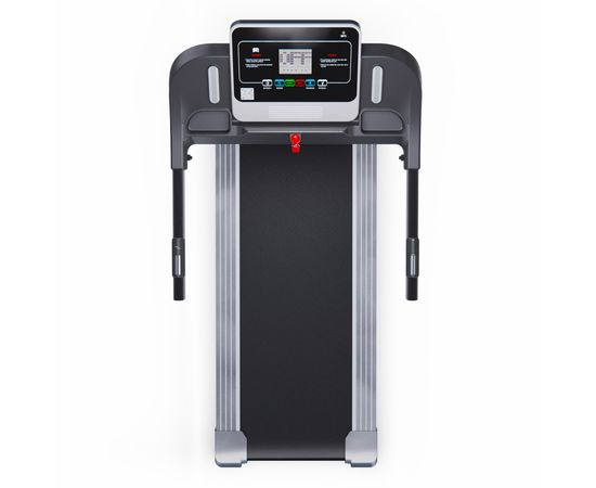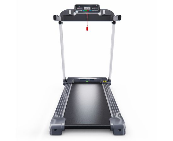 Беговая дорожка DFC T-X510 — это надежное и функциональное решение для домашних тренировок. Оснащена мощным двигателем 1,5 л/с, который обеспечивает развитие скорости от 1 до 12 км/ч. Размер бегового полотна составляет 121×41 см, а в развернутом виде — 252×41 см, что создает комфортные условия для бега или ходьбы. Амортизационная система из 6 амортизаторов снижает нагрузку на суставы и позвоночник, делая тренировки более мягкими и безопасными. Встроенный монохромный LCD-дисплей 4 дюйма отображает время, скорость, дистанцию, калории и пульс, а сенсорные датчики на поручнях позволяют быстро измерять сердечный ритм. В дорожке есть MP3-вход и 12 предустановленных программ, а также поддержка приложения SPAX через Bluetooth, что помогает разнообразить тренировки и повысить мотивацию. В комплект входит держатель для планшета и бутылки, транспортировочные ролики и компенсаторы неровности пола для удобства перемещения и установки. Максимальный вес пользователя — 120 кг. Размер в рабочем виде — 115×69×151 см, в сложенном — 26×69×147 см, вес — 40 кг, а в упаковке — 48 кг. Гарантия — 12 месяцев. Эта дорожка идеально подойдет для поддержания формы и укрепления здоровья в домашних условиях.