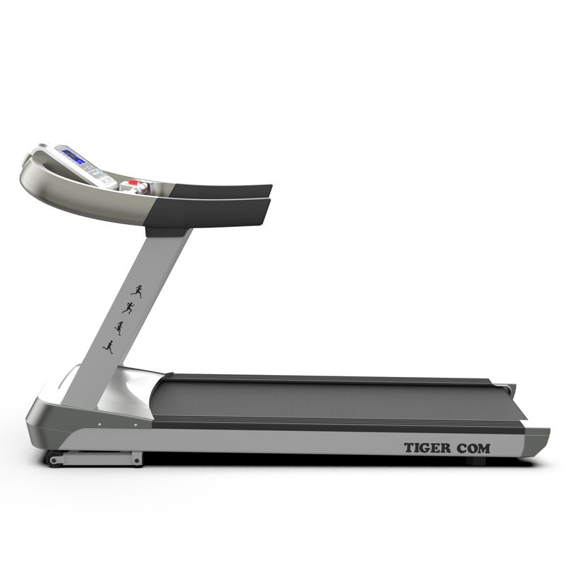 Беговая дорожка DFC TIGER PRO — это улучшенная версия популярной модели TIGER, предназначенная для коммерческого использования. Оснащена мощным двигателем переменного тока мощностью 6 лошадиных сил, который позволяет достигать скорости от 0,3 до 20 км/ч. Регулировка скорости осуществляется электронно через консоль с помощью кнопок быстрого запуска или постепенным увеличением с шагом 0,1 км/ч с помощью клавиш около сенсорных датчиков пульса. Электронный наклон регулируется в диапазоне от 0 до 15%, что позволяет имитировать бег в гору и разнообразить тренировки. Размер бегового полотна составляет 60 х 161 см с толщиной 3 мм, что обеспечивает комфорт и простор при беге или ходьбе. Дека толщиной 25 мм выдерживает нагрузки до 200 кг и подходит для пользователей ростом до 210 см. Встроенный 7-дюймовый ЖК-дисплей с синей подсветкой показывает время, скорость, дистанцию, калории, пульс и угол наклона. Оборудована 8 программами тренировок, разъемами MP3 и USB для прослушивания музыки и просмотра фильмов, а также двумя динамиками высокого качества. На панели расположены кнопки для переключения музыки и регулировки звука. USB-вход позволяет подключать медиафайлы и заряжать гаджеты. Для удобства есть два кармана для бутылок, подставка под планшет и сенсорные датчики пульса, расположенные под консолью. Транспортировочные ролики позволяют легко перемещать тренажер по комнате. Конструкция не складная, что обеспечивает стабильность и прочность.