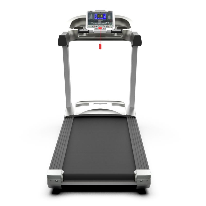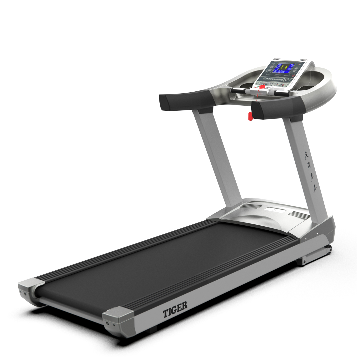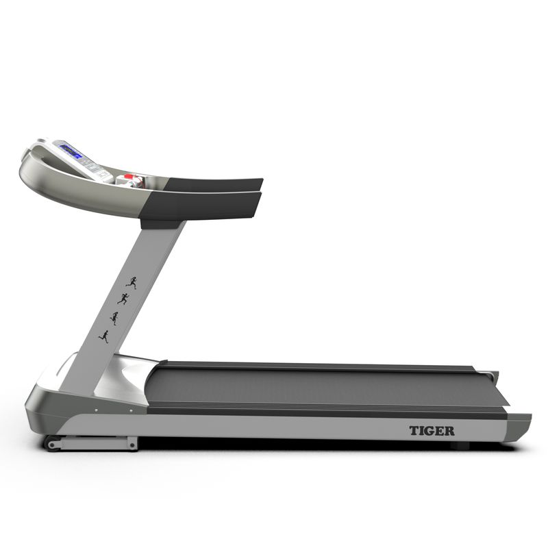 Беговая дорожка DFC TIGER T770 — это идеальный выбор для полноценной домашней тренировки. Модель оснащена мощным двигателем постоянного тока 5,0 л/с, который позволяет развивать скорость от 0,3 до 20 км/ч. Электронное управление скоростью осуществляется с консоли с помощью кнопок быстрого запуска или плавным регулированием с шагом 0,1 км/ч около сенсорных датчиков пульса. Угол наклона регулируется от 0 до 15° и управляется как кнопками быстрого изменения, так и плавным регулированием с клавиш. Размер бегового полотна составляет 60×161 см, толщина — 2,5 мм, что обеспечивает максимум комфорта и пространства для бега или ходьбы. Толщина деки — 25 мм, дорожка выдерживает пользователей весом до 180 кг и подходит для роста до 210 см. На панели расположены 7-дюймовый LCD дисплей с синей подсветкой и 8 программ тренировок. Встроенные разъемы MP3 и USB позволяют слушать музыку или просматривать видео, а два динамика высокого качества создают атмосферу настоящего кинотеатра или концерта. Для удобства предусмотрены держатели для планшета и бутылки, сенсорные датчики пульса под консолью, а также транспортировочные ролики для быстрого перемещения по комнате.