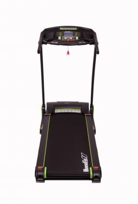 Электрическая беговая дорожка Housefit SPIRO 452 с мощным мотором 2.5 л.с., позволяющим развивать скорость до 16 км/ч, отлично подойдет для занятий бегом в домашних условиях. Размер бегового полотна 45х130 см считается наиболее оптимальным для комфортных занятий и позволяет выдерживать вес пользователей до 110 кг. Амортизационная система полотна "Soft-Run" с 4-мя эластомерами значительно снижает вибрации и ударную нагрузку на позвоночник, связки и суставы. Голубой LED дисплей выводит на экран основные параметры тренировки: время, скорость, дистанцию, калории, пульс. На выбор представлено несколько разноплановых встроенных программ, в которых используются различные виды тренировок, добавить разнообразия в тренировочный процесс можно с помощью, регулируемого механическим способом, угла наклона бегового полотна. Сделать упор на конкретный показатель можно в режиме целевых тренировок. Также в дорожке установлена система анализа телесного жира «Body Fat», она позволит измерить максимально точный процент доли жира в организме. Для измерения пульса пользователя установлены сенсорные датчики, расположенные на ручках беговой дорожки. За удобство складывания отвечает двухфазная гидравлическая система - она существенно облегчает складывание тренажера, а при раскладывании обеспечивает медленное опускание бегового полотна. Перемещение беговой дорожки происходит за счет 2-х транспортировочных роликов. Приятной для пользователя опцией является подставка под телефон или планшет.