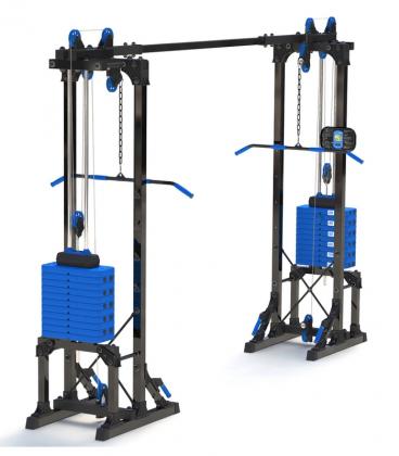 В реабилитационных тренажерах для увеличения рабочего хода система блоков устроена так, что делит усилие в 2 раза. Проигрывая в весе в 2 раза, мы выигрываем 2 раза в расстоянии, поэтому при суммарном весе стека, например 90 кг, нагрузка равна 45 кг. При этом каждые 10 см подъема грузов соответствуют рабочему ходу 20 см.