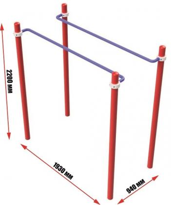 Брусья комбинированные серии "Воркаут" имеют четыре перекладины, устанавливаются с помощью хомутов на желаемой высоте от поверхности.