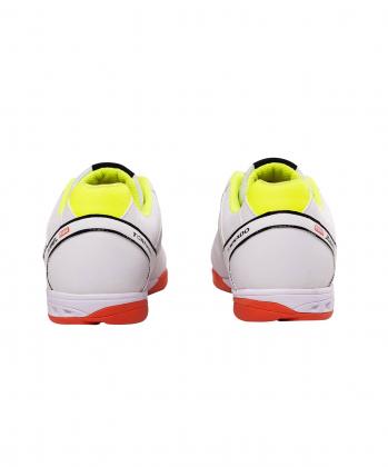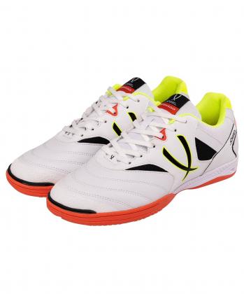 Верх обуви выполнен из технологичного искусственного материала, который отличается повышенной износостойкостью. В носовой части предусмотрено усиление в виде специальной пластиковой вставки для защиты пальцев, которая также помогает быстро обрабатывать мяч в игре. Помимо этого, на мысок бутсы нанесено прорезиненное напыление, которое защищает верх обуви и продлевает срок службы бутсы. Для уменьшения нагрузки на опорно-двигательный аппарат в процессе бега в подошву данной модели встроен специальный амортизирующий материал Phylon (филон). Совместно с формованной стелькой из вспененного материала ЭВА это позволяет минимизировать опасные последствия игры на твердых покрытиях и повысить комфорт. Подошва обуви выполнена из качественной резины по технологии Non-marking, что обеспечивает безупречное сцепление с поверхностью, бутсы не оставляют следов на паркете.