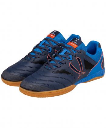 Верх обуви выполнен из технологичного искусственного материала, который отличается повышенной износостойкостью. В носовой части предусмотрено усиление в виде специальной пластиковой вставки для защиты пальцев, которая также помогает быстро обрабатывать мяч в игре. Помимо этого, на мысок бутсы нанесено прорезиненное напыление, которое защищает верх обуви и продлевает срок службы бутсы. Для уменьшения нагрузки на опорно-двигательный аппарат в процессе бега в подошву данной модели встроен специальный амортизирующий материал Phylon (филон). Совместно с формованной стелькой из вспененного материала ЭВА это позволяет минимизировать опасные последствия игры на твердых покрытиях и повысить комфорт. Подошва обуви выполнена из качественной резины по технологии Non-marking, что обеспечивает безупречное сцепление с поверхностью, бутсы не оставляют следов на паркете.