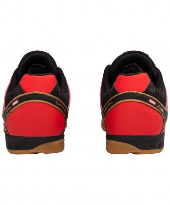 Верх обуви выполнен из технологичного искусственного материала, который отличается повышенной износостойкостью. В носовой части предусмотрено усиление в виде специальной пластиковой вставки для защиты пальцев, которая также помогает быстро обрабатывать мяч в игре. Помимо этого, на мысок бутсы нанесено прорезиненное напыление, которое защищает верх обуви и продлевает срок службы бутсы. Для уменьшения нагрузки на опорно-двигательный аппарат в процессе бега в подошву данной модели встроен специальный амортизирующий материал Phylon (филон). Совместно с формованной стелькой из вспененного материала ЭВА это позволяет минимизировать опасные последствия игры на твердых покрытиях и повысить комфорт. Подошва обуви выполнена из качественной резины по технологии Non-marking, что обеспечивает безупречное сцепление с поверхностью, бутсы не оставляют следов на паркете.
