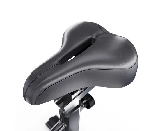 Регулировка руля на 5 уровней по вертикали в диапазоне от 114 до 123 см позволяет настроить руль под рост каждого пользователя, обеспечивая максимальный комфорт и эффективность тренировок. Спортивное сиденье также регулируется по горизонтали и на 5 уровней по вертикали от 85 до 95 см, что помогает настроить велотренажер под свой рост.
