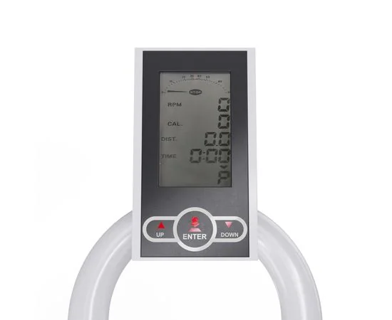 Магнитный велотренажер оснащен жидкокристаллическим дисплеем и датчиком частоты сердечных сокращений, который отслеживает вашу скорость, количество оборотов в минуту, сожженные калории, пройденное расстояние и время тренировки.