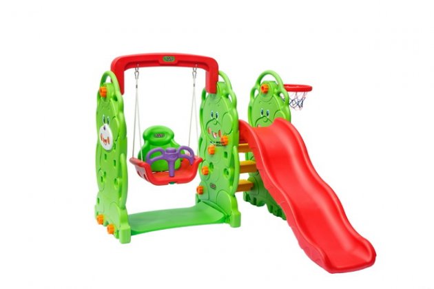 Комплектация: пластиковая горка, качели, лесенка, кольцо баскетбольное