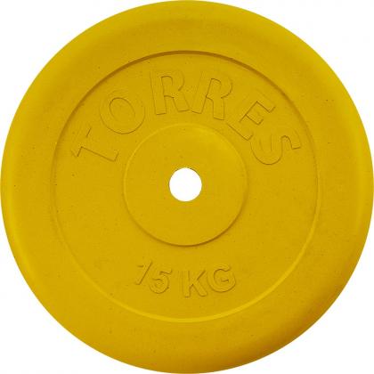 Диск обрезин. «TORRES 15 кг» арт.PL504215, d.25мм, металл в резиновой оболочке, желтый