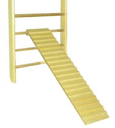 Доска наклонная навесная используется в качестве снаряда для гимнастики. В конструкции доски имеется 2 крючка, что позволяет навешивать ее на шведскую (гимнастическую) стенку, доска толщиной 30 мм, шириной 240 мм, длиной 1500 мм. Данный снаряд изготавливается из хвойных пород древесины и покрывается 3 слоями лака.