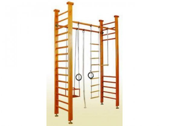 Комплектация: шведская стенка, качели, канат, верёвочная лестница, трапеция, кольца пластиковые