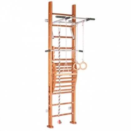 Комплектация: шведская стенка разборная, турник стационарный с неопреновыми ручками , кольца гимнастические деревянные, тарзанка, канат, тренажер Vinsere