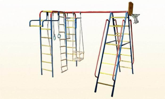 Комплектация: турник + брусья, турник, канат, кольца, качели;