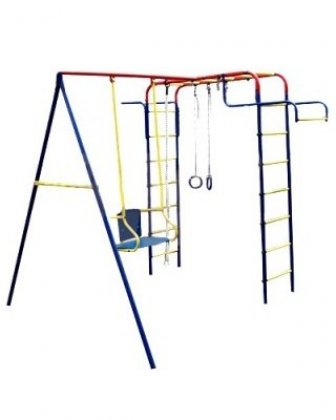 комплектация дачного комплекса: турник + брусья, турник, канат, кольца, качели со спинкой на подшипниках