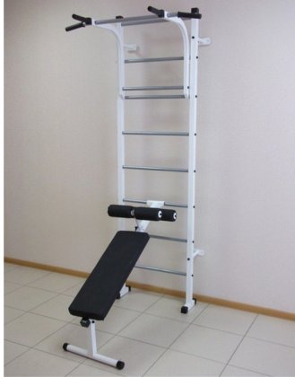 комплектация: турник + брусья подвижный, скамья для пресса съёмная (0,25 х 1,20 м)