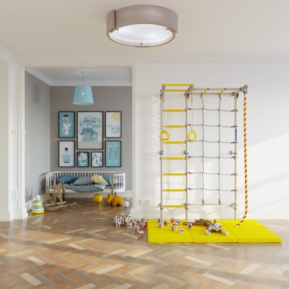 Комплектация: канат, кольца гимнастические, трапеция, сетка для лазания