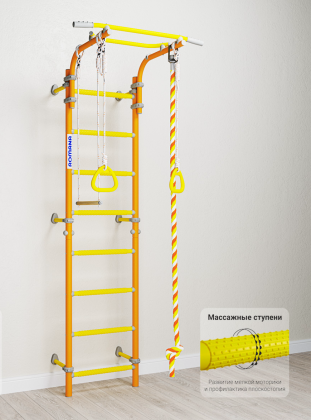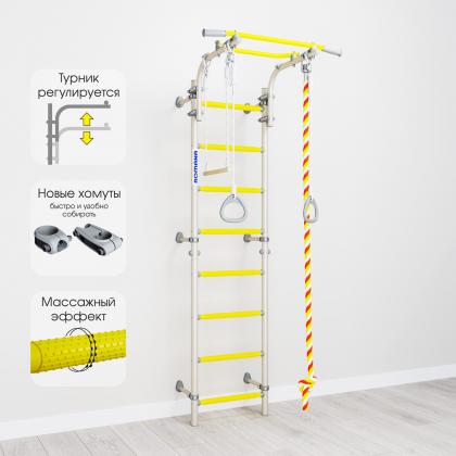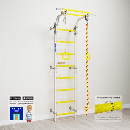 Комплектация: турник подвижный, канат, кольца гимнастические, трапеция