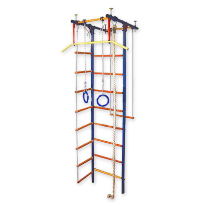 комплектация: деревянные перекладины d 28мм, турник с широким хватом, изопреновые ручки, канат, кольца гимнастические, трапеция