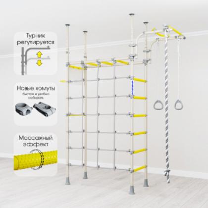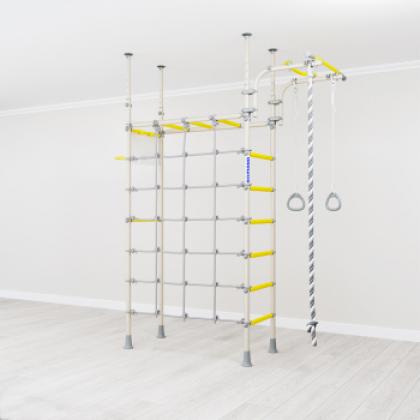 Комплектация: турник подвижный, канат, кольца гимнастические, сетка для лазания, щит баскетбольный