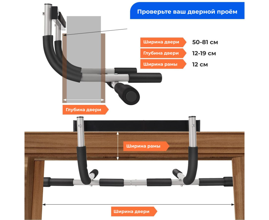 Турник DFC DG8121 — это ваш надежный помощник для домашних тренировок! Он идеально подходит для выполнения упражнений на верхнюю часть тела с тремя положениями хвата: узким, широким и нейтральным, а также используется для отжиманий и упражнений на пресс. Мгновенно закрепляется на дверном проеме или легко снимается, не повреждая дверь, что делает его максимально удобным и универсальным. Конструкция из сверхпрочной армированной стали толщиной 1,2 мм обеспечивает долговечность и надежность, а металлическая перекладина для подтягиваний выдерживает нагрузки до 110 кг. Мягкие поручни из вспененного материала создают эргономичный захват и комфорт во время тренировки. Расстояние между брусьями — 38 см. Превратите любой дверной проем в личный тренажерный зал и достигайте своих фитнес-целей прямо дома!