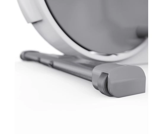Одним из ключевых преимуществ тренажёра является его складная конструкция. Это особенно удобно для использования в квартирах или небольших помещениях. Такой компактный эллиптический тренажёр впишется даже в ограниченное пространство. Для удобного перемещения предусмотрены транспортировочные ролики, а компенсаторы пола позволяют установить тренажёр ровно даже на неровной поверхности.