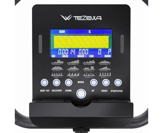 На встроенном LCD-дисплее с синей подсветкой отображаются все важные параметры тренировки: время, скорость, дистанция, калории, пульс (сенсорные датчики на поручнях), обороты в минуту (RPM), а также мощность в ваттах. Это делает тренировки максимально контролируемыми и эффективными.