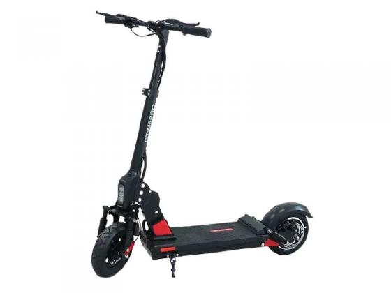Рама транспортного средства изготовлена из надежного, но при этом легкого сплава алюминия, что обеспечивает небольшой вес конструкции. При этом электрический самокат очень устойчивый и легко управляемый. В заднем колесе размещен двигатель мощностью 500 Вт, что позволяет разгоняться до 50 км/ч.