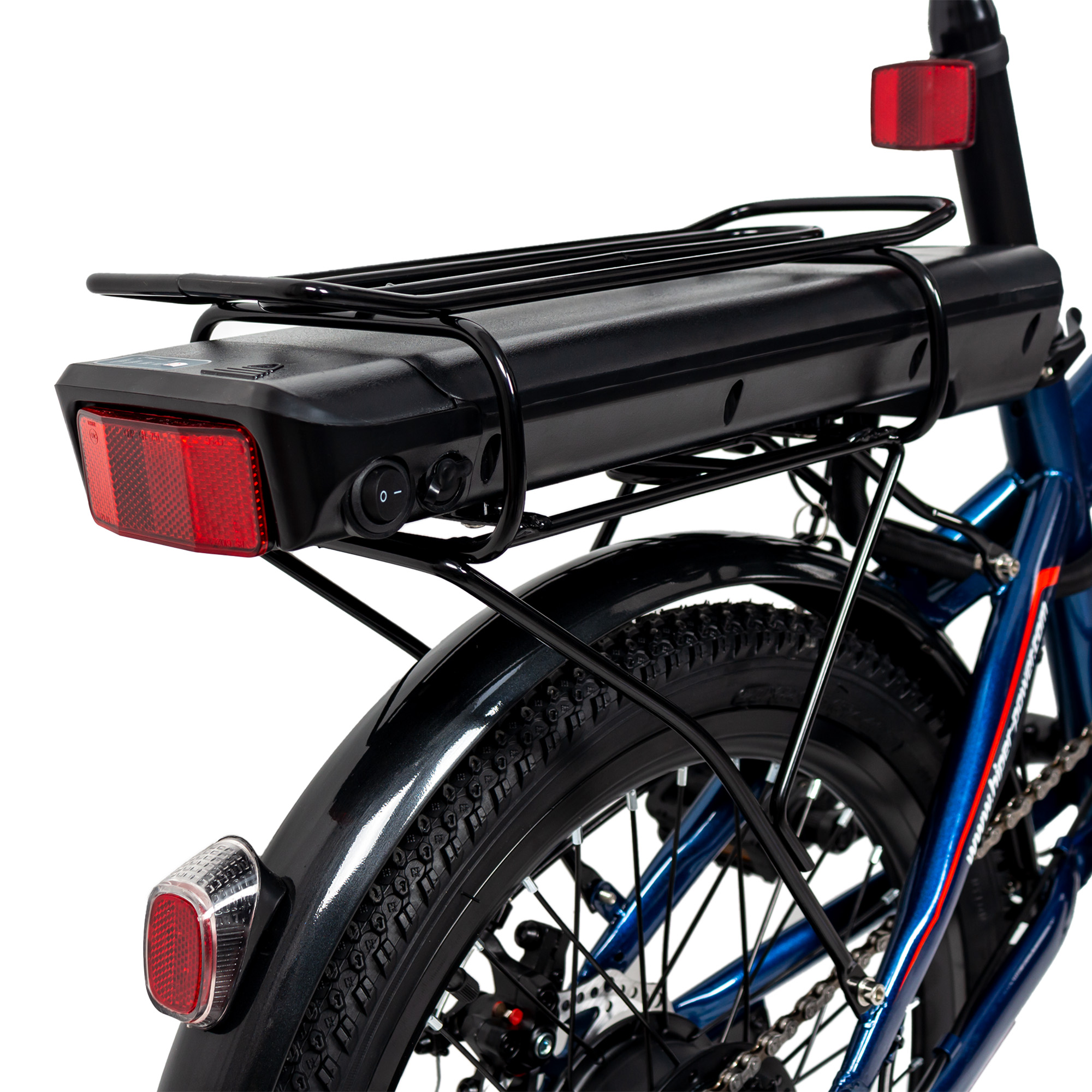 Приятным бонусом будет полная комплектация электровелосипеда, куда входит яркая передняя фара, крылья для колес и багажник.