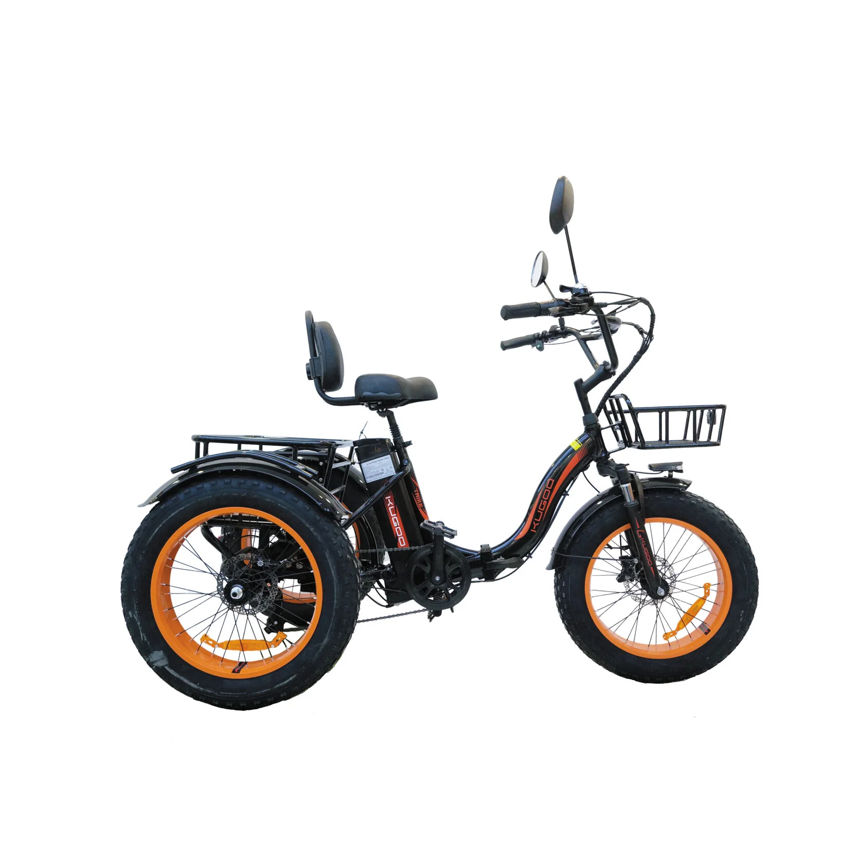 20-дюймовые колёса, эффективные дисковые тормоза, амортизация и продуманная светосигнальная система делают поездки безопасными и комфортными. Kugoo Trike выдерживает нагрузку до 150 кг и комплектуется зеркалами заднего вида. Идеален для пожилых людей и всех, кто хочет уверенно чувствовать себя на дороге.