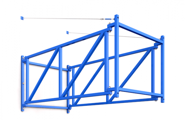 Ферма выполнена из металлического профиля 40х40 мм. В каркасе предусмотрены отверстия для крепления щита и монтажные отверстия для крепления к стене. Изделие окрашено методом порошкового напыления в электростатическом поле.